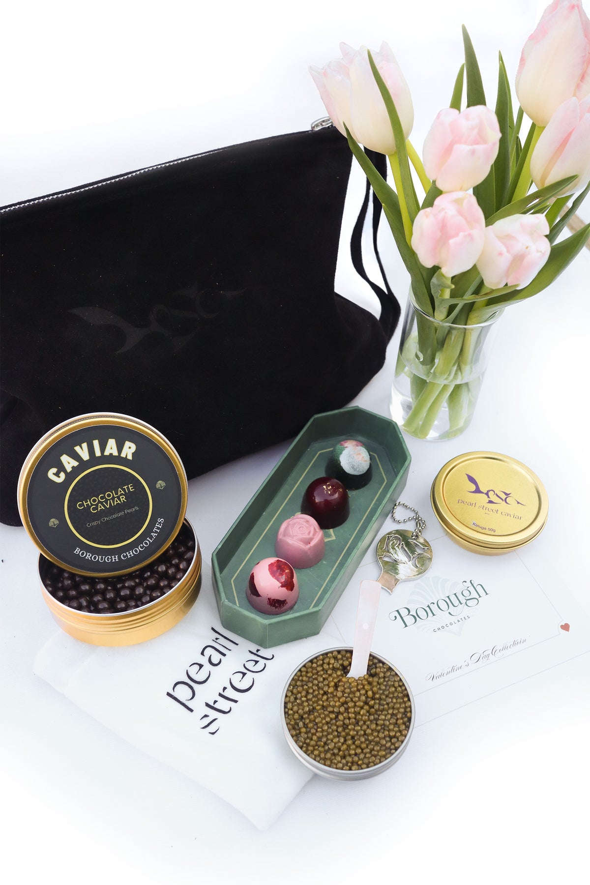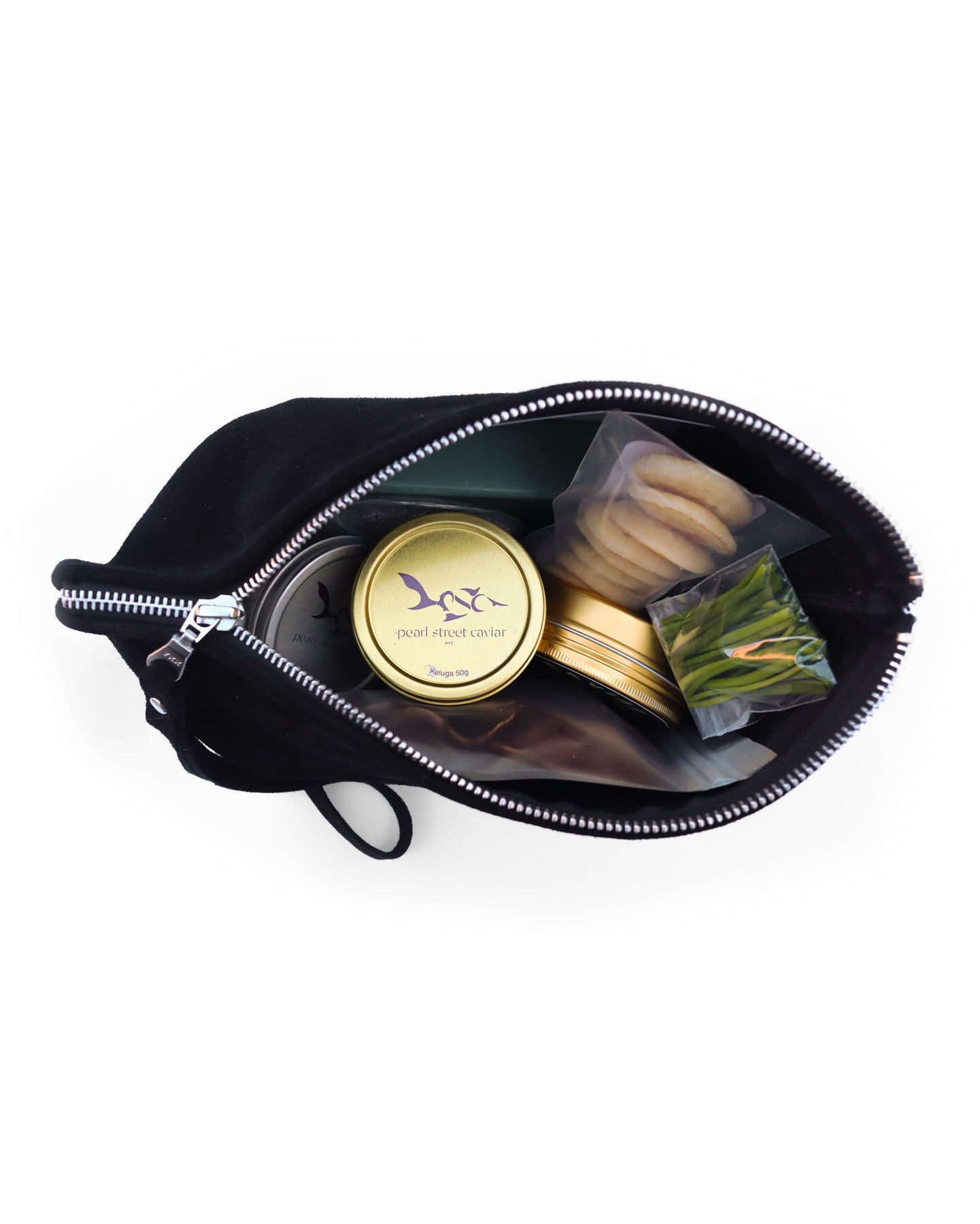 A gift to enjoy and a gift to keep, the Chocolate & Caviar Suede case has it all! Enjoy or gift a date night at home with caviar and chocolates, arriving in a suede case perfect for day to day use.